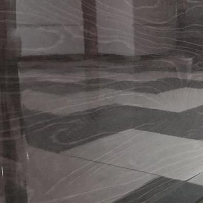 Меблі виконані з глянцевої МДФ у кольорі графіт з дерев’яною текстурою.