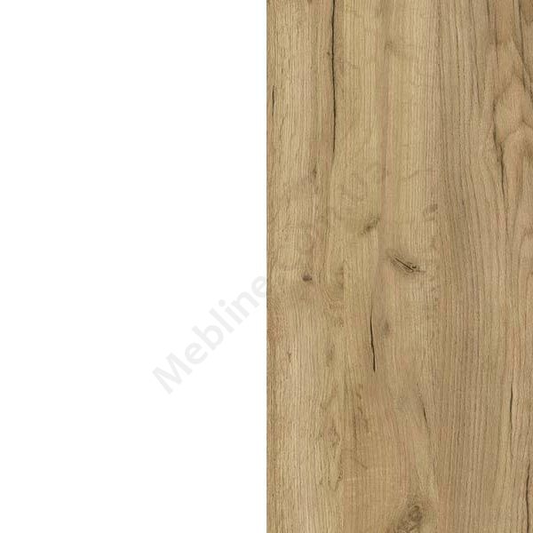 Деревоподібний колір корпусу додає меблям затишку та спокою, а білі глянцеві фасади — легкості та візуально збільшить простір.