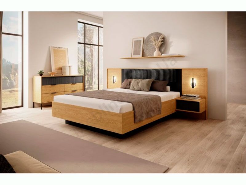 В асортимент колекції входять необхідні меблі для облаштування спальні — ліжко, шафа, комод та приліжкові тумби.