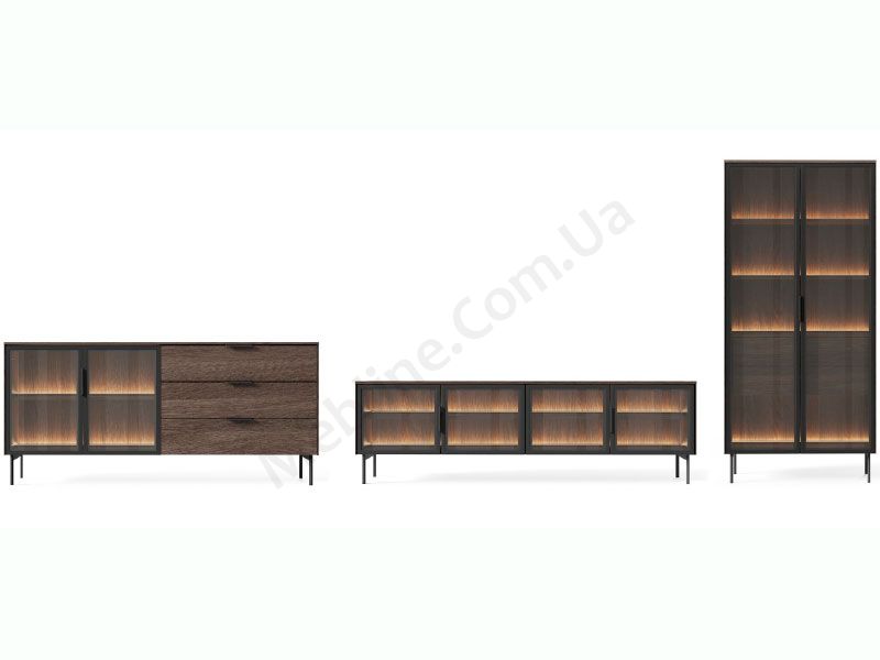 Родзинкою колекції є вбудоване підсвічування кожного модуля та чорні металеві ніжки та ручки.
