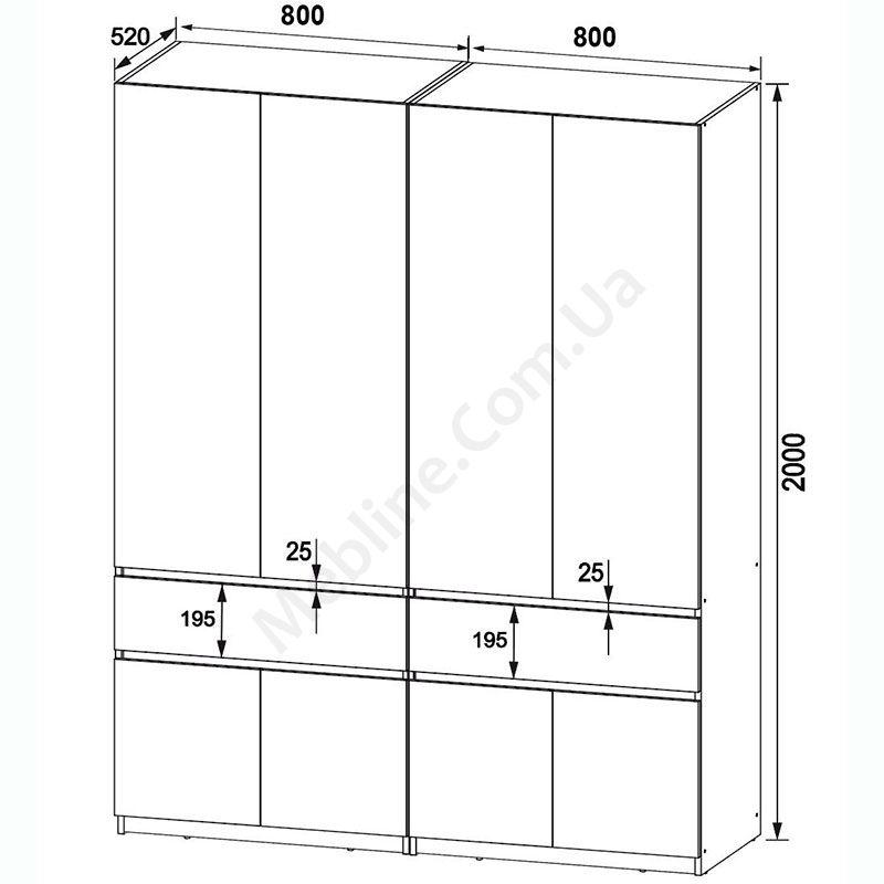 Шафа Брайт 1600х520х2000 (800+800) Дуб Крафт Білий - Мастер Форм