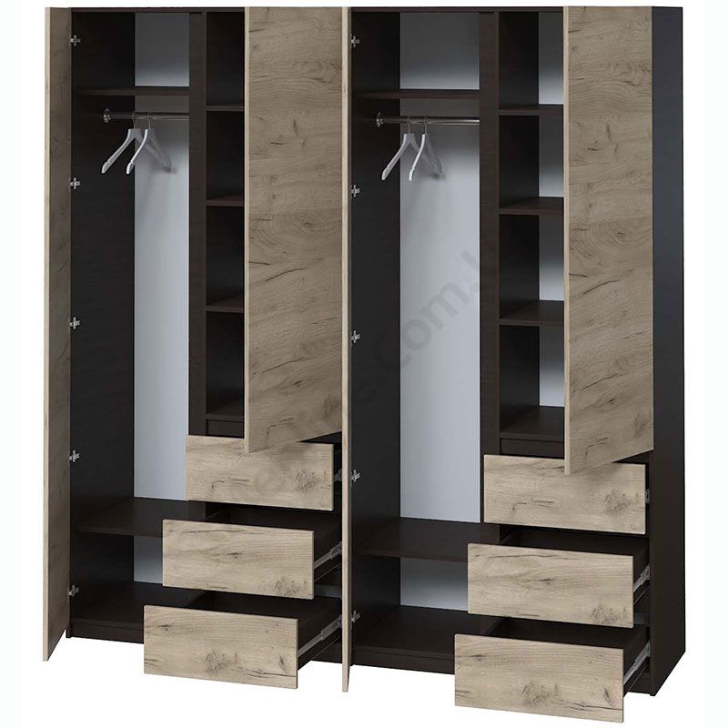 - За двома дверцятами по штанзі для одягу та по дві полиці.