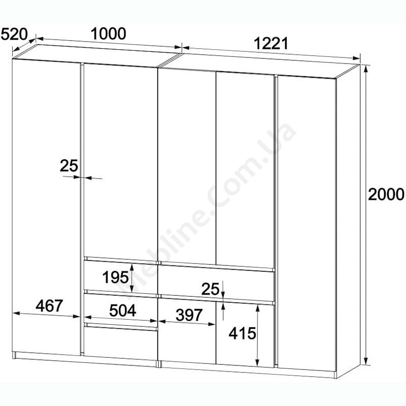 - За лівими дверцятами штанга для одягу та дві полиці.