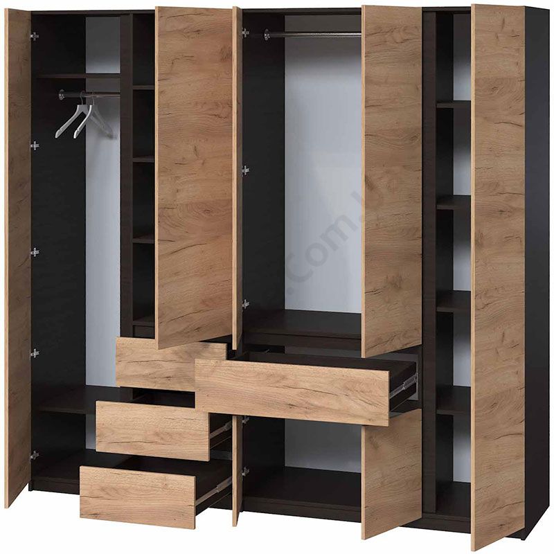 - За лівими дверцятами штанга для одягу та дві полиці.