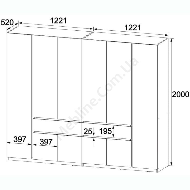 Шестистулкова шафа з висувними шухлядами.