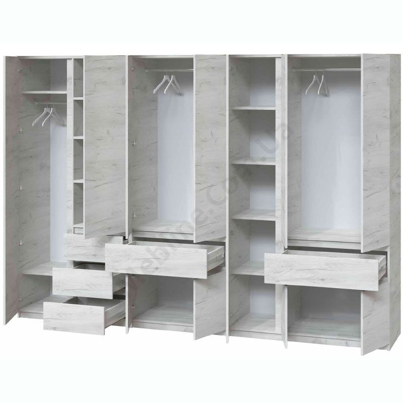 - За лівими дверцятами штанга для одягу та дві полиці.