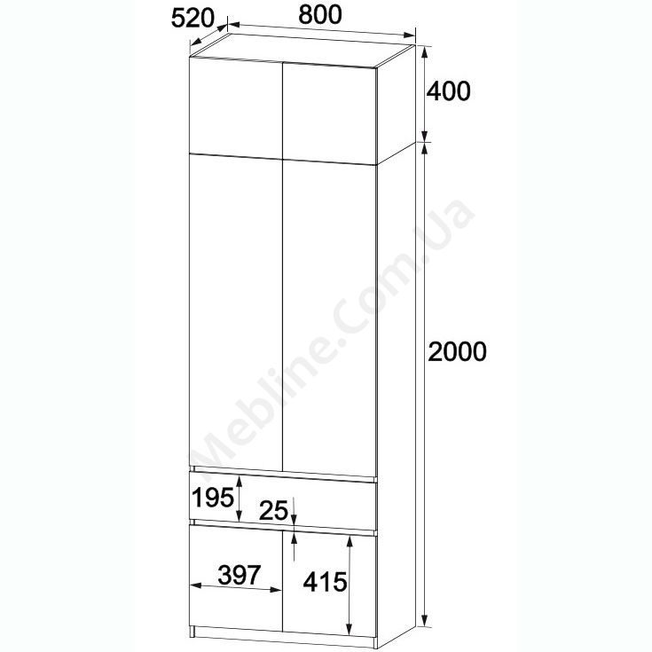 Двостулкова шафа з висувною шухлядою та антресоллю.