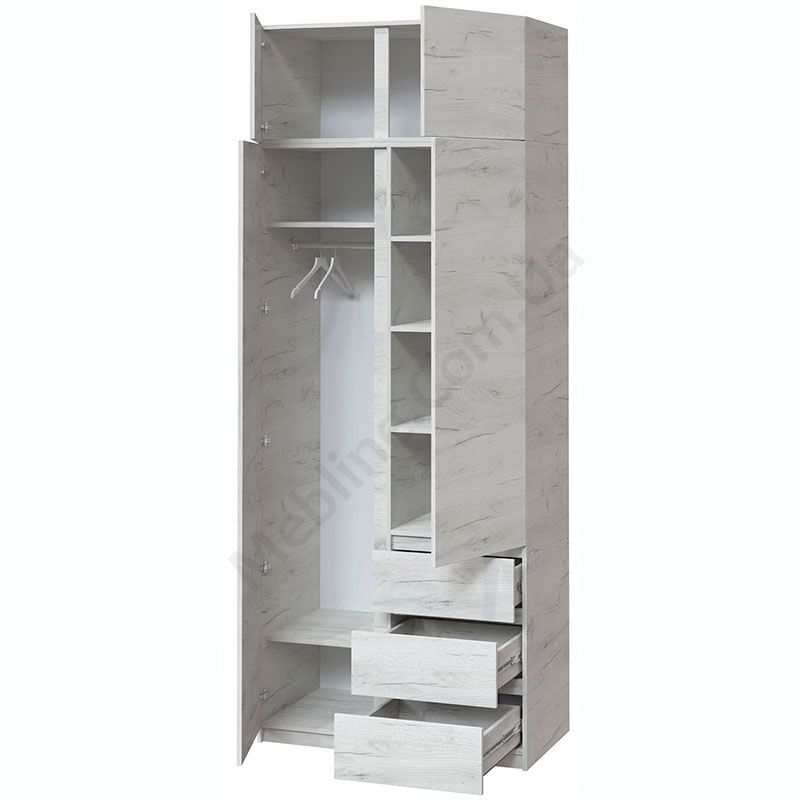 Двостулкова шафа з висувними шухлядами та антресоллю.