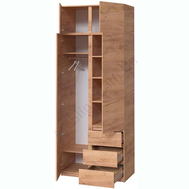Двостулкова шафа з висувними шухлядами та антресоллю.