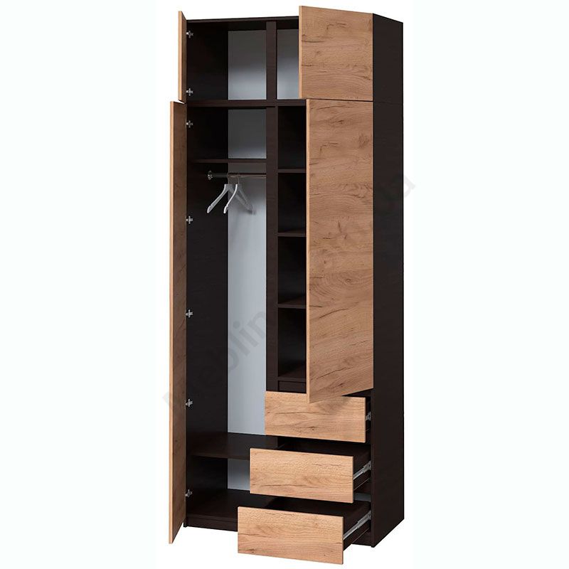 Двостулкова шафа з висувними шухлядами та антресоллю.