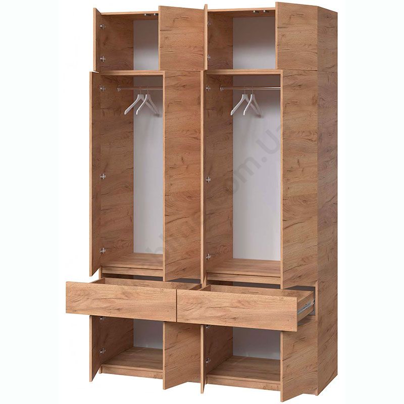 Чотиристулкова шафа з висувними шухлядами та антресоллю.