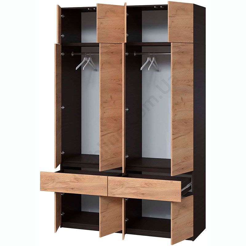 Чотиристулкова шафа з висувними шухлядами та антресоллю.