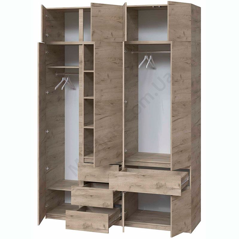 Чотиристулкова шафа з висувними шухлядами та антресоллю.