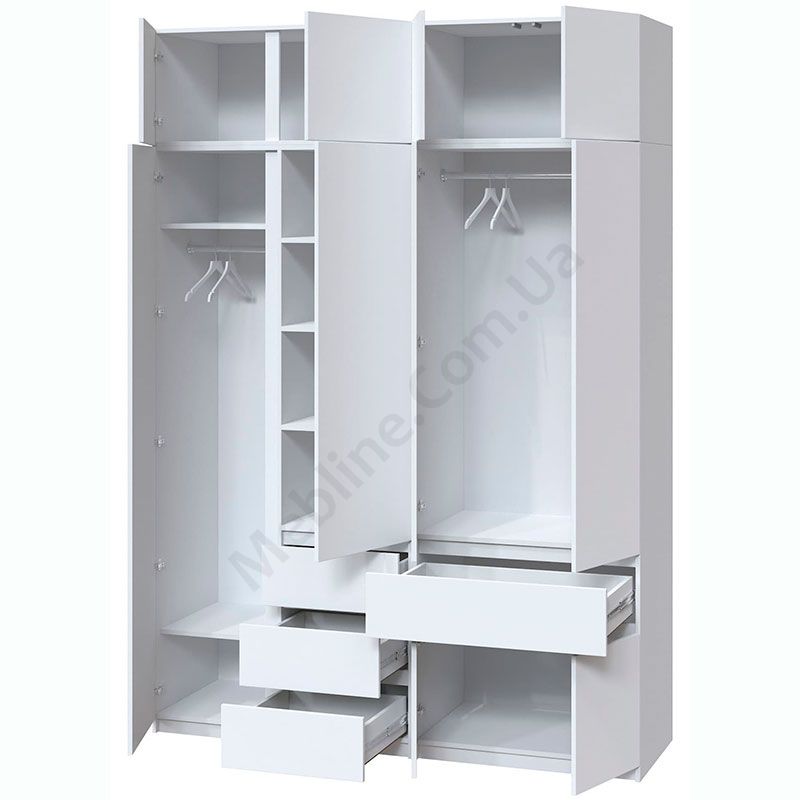 Чотиристулкова шафа з висувними шухлядами та антресоллю.