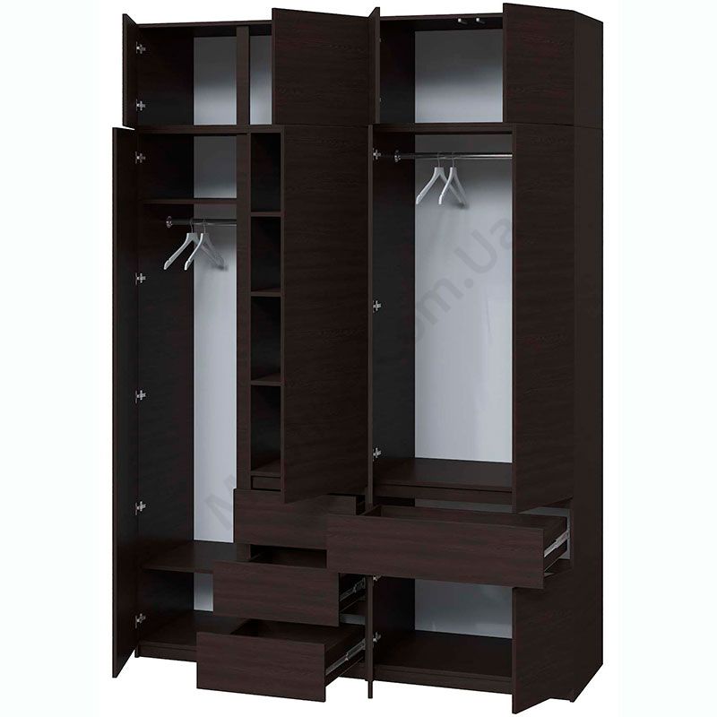 Чотиристулкова шафа з висувними шухлядами та антресоллю.