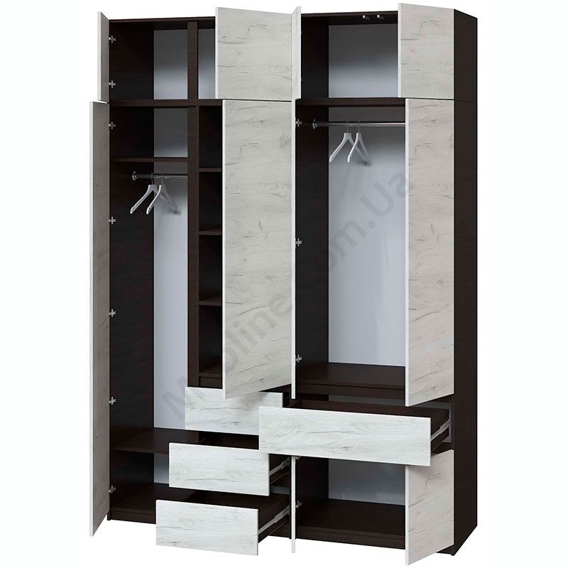 Чотиристулкова шафа з висувними шухлядами та антресоллю.