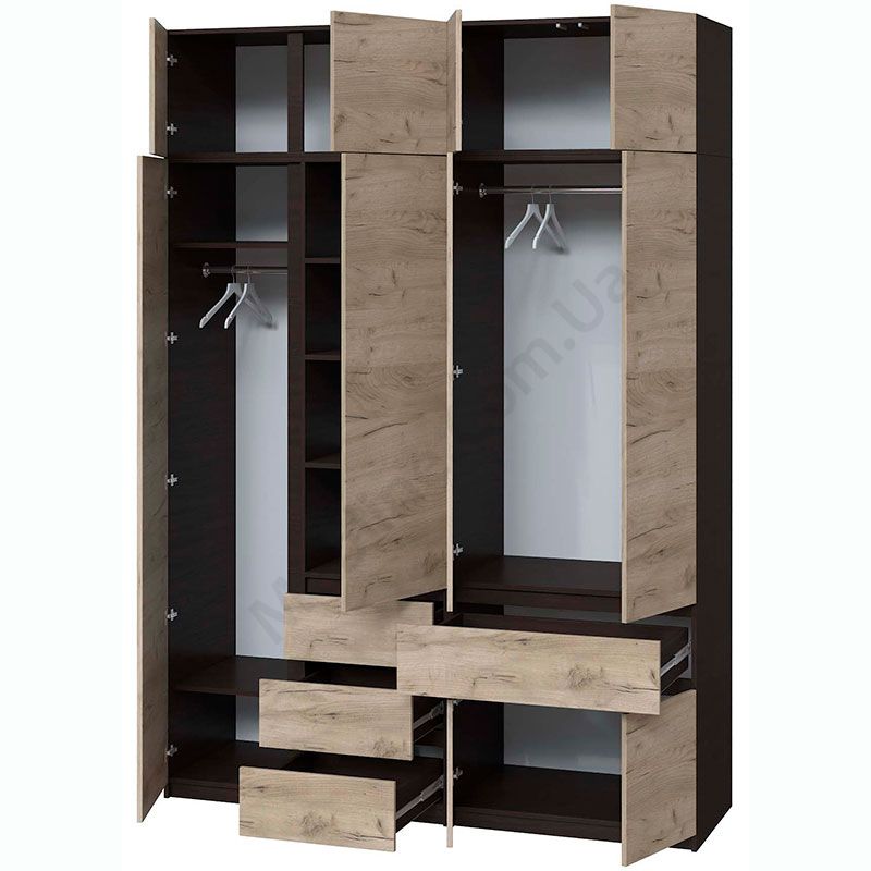 Чотиристулкова шафа з висувними шухлядами та антресоллю.