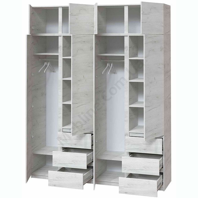 Чотиристулкова шафа з висувними шухлядами та антресоллю.