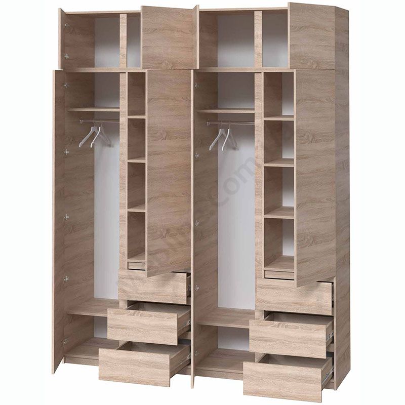Чотиристулкова шафа з висувними шухлядами та антресоллю.