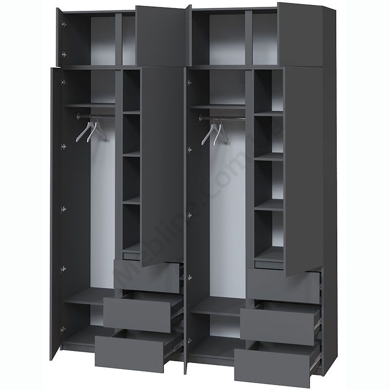 Чотиристулкова шафа з висувними шухлядами та антресоллю.
