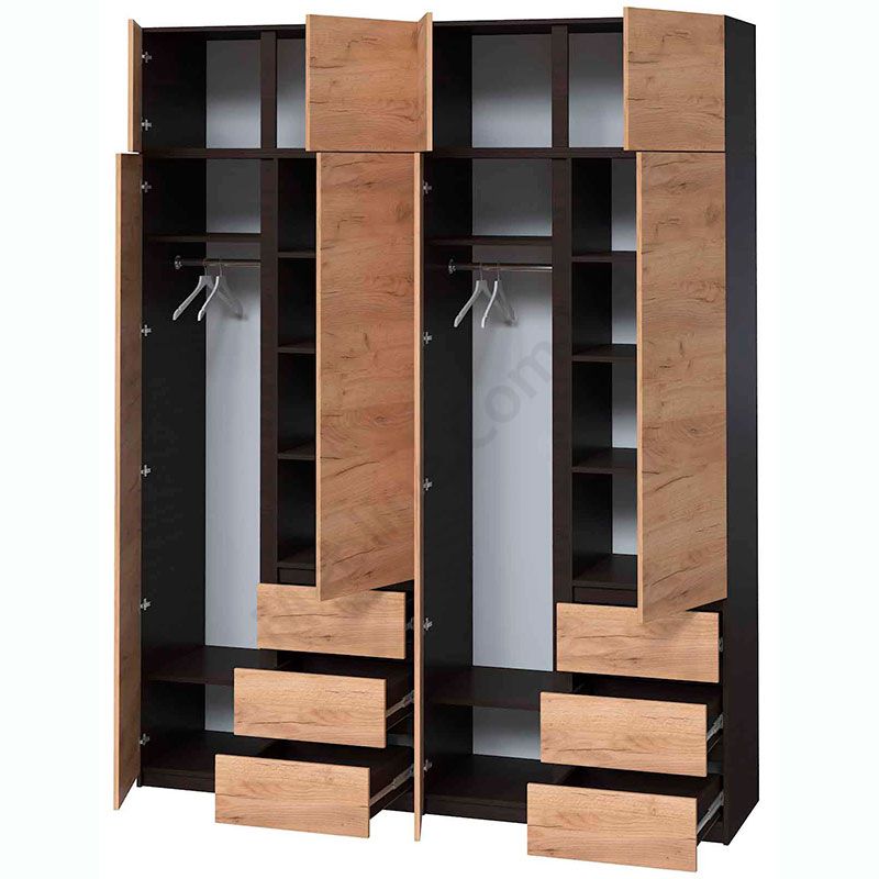 Чотиристулкова шафа з висувними шухлядами та антресоллю.