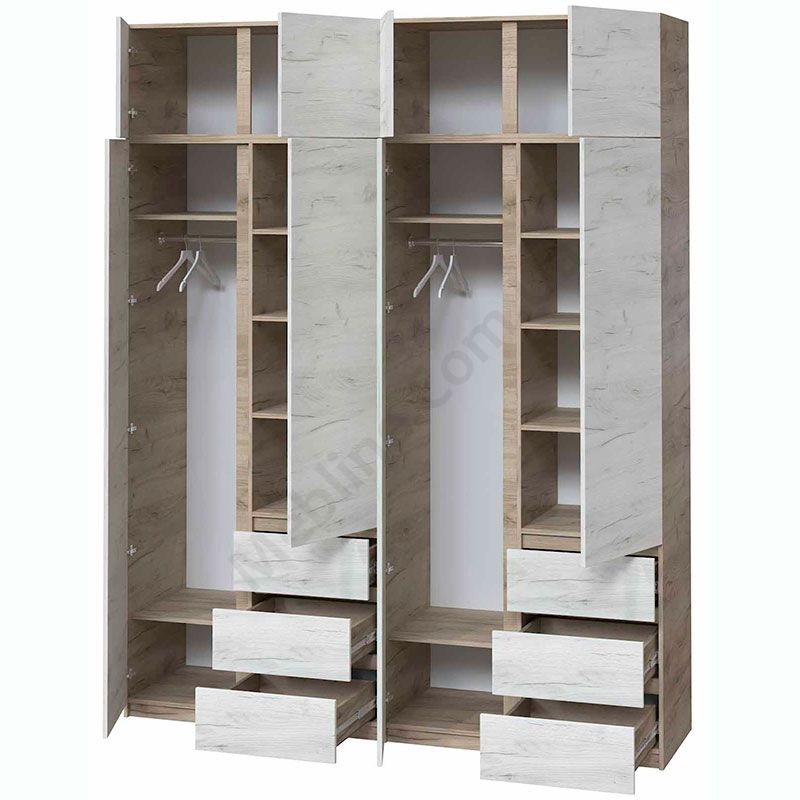Чотиристулкова шафа з висувними шухлядами та антресоллю.