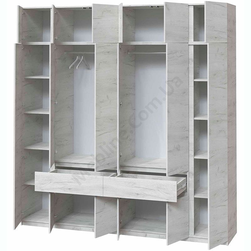 Шестистулкова шафа з висувними шухлядами та антресоллю.