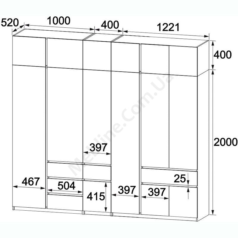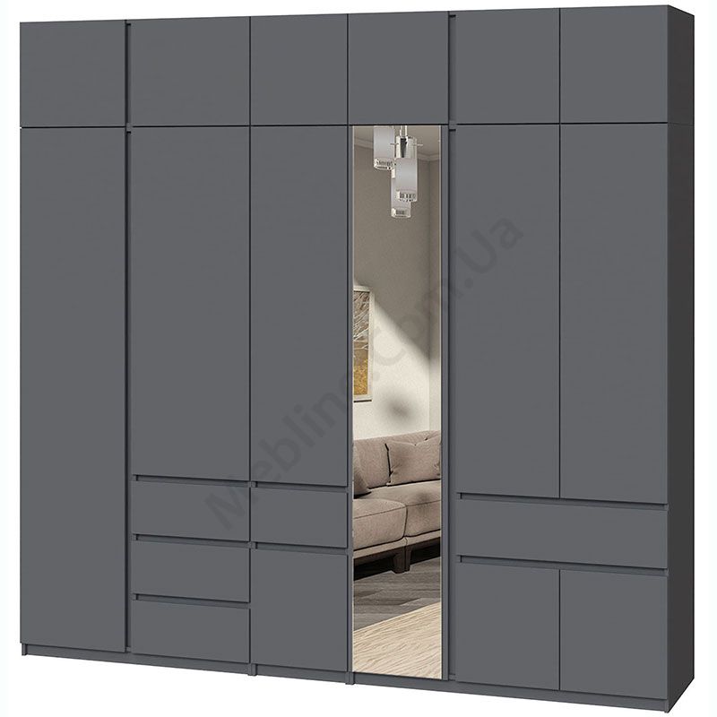 Шестистулкова шафа з висувними шухлядами та антресоллю.