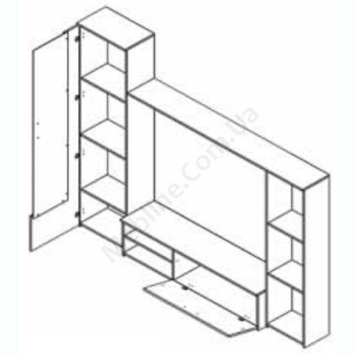 - Тумба під телевізор з відкидними дверцятами та двома відкритими нішами.