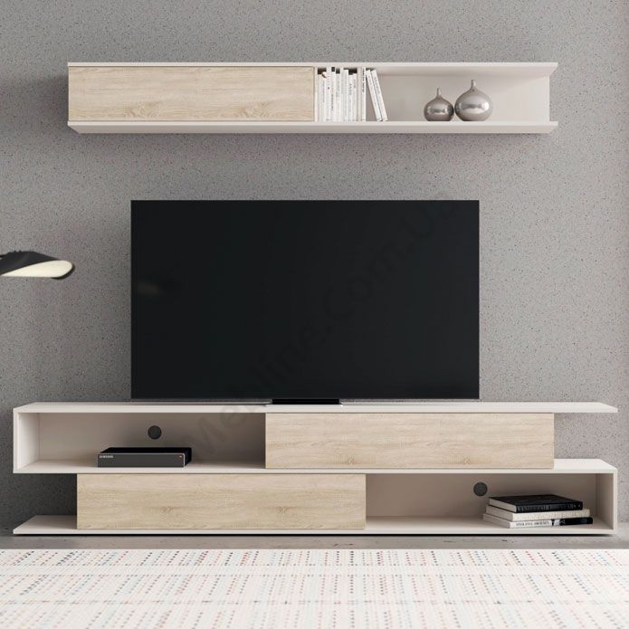 - Тумба під телевізор з відкидними дверцятами та двома відкритими нішами.