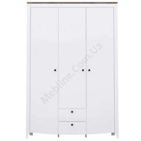 Тридверна шафа з висувними шухлядами, полицями та штангою.