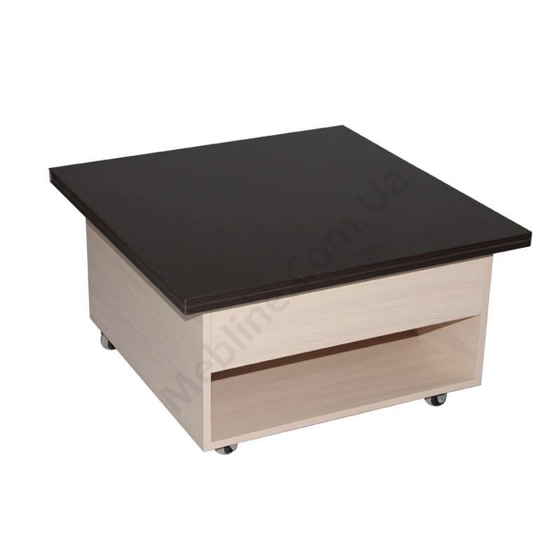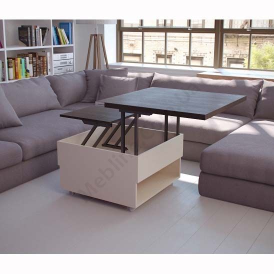 Журнальний столик трансформується в повноцінний обідній стіл.Ламінована ДСП Swisspan, завтовшки 16 мм.Екологічна безпека класу Е-1.Фурнітура — DC та Linken.Протиударна кромка стільниці — ПВХ, завтовшки 1 мм.Протиударна кромка корпусу — ПВХ, завтовшки 0, 5 мм.