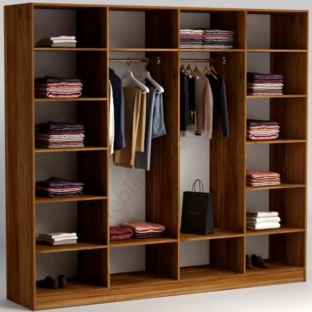 - За середніми дверцятами штанги для одягу та по дві полиці.