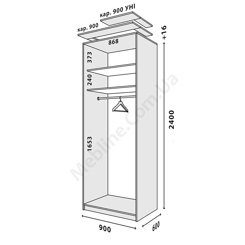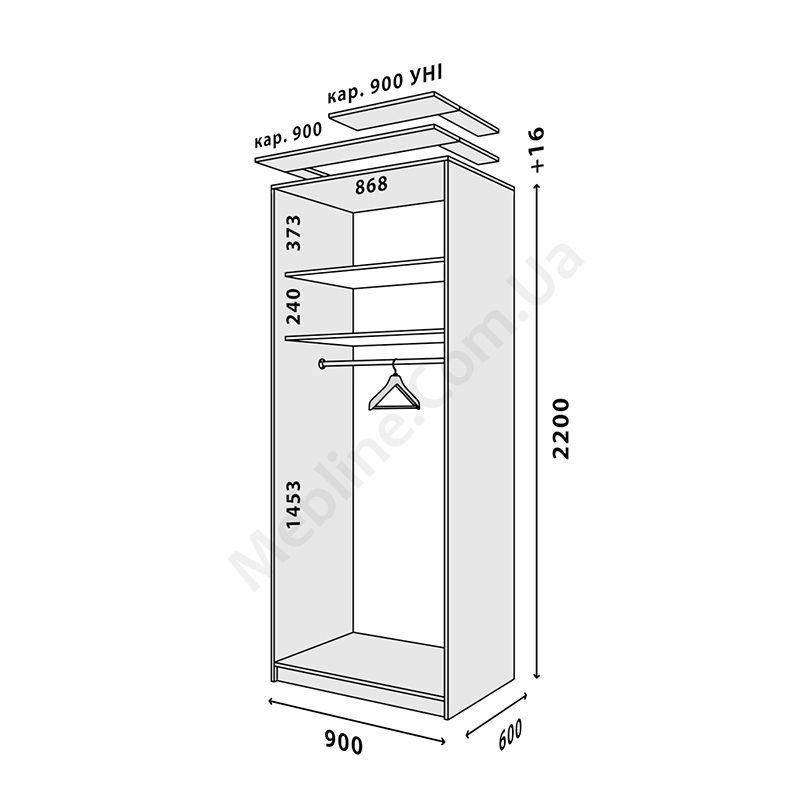 - Шафи можуть бути висотою 2400 або 2200 на вибір.