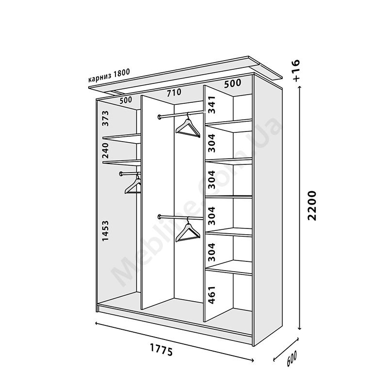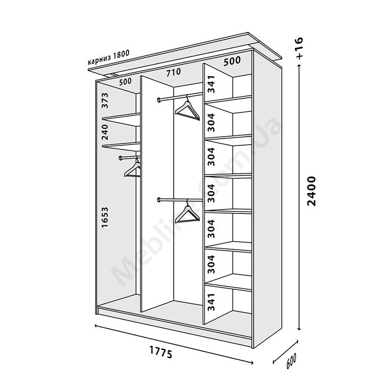- Шафи можуть бути висотою 2400 або 2200 на вибір.