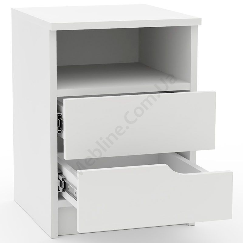 Приліжкова тумба з висувними шухлядами та відкритою поличкою.