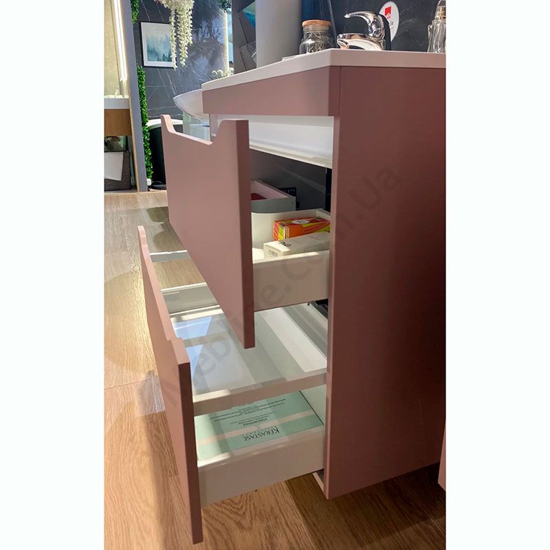 Навісна шафка для ванної з умивальником та висувними шухлядами.