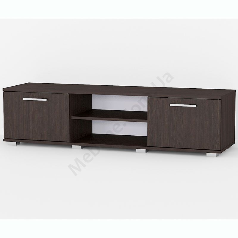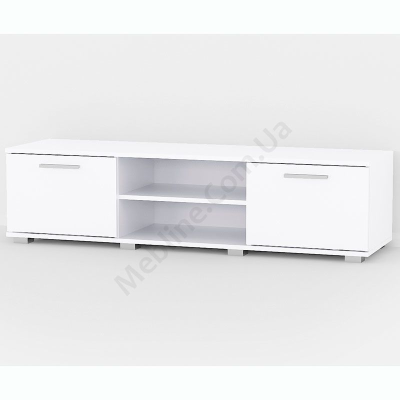 Тумба під телевізор з дверцятами та відкритими полицями.