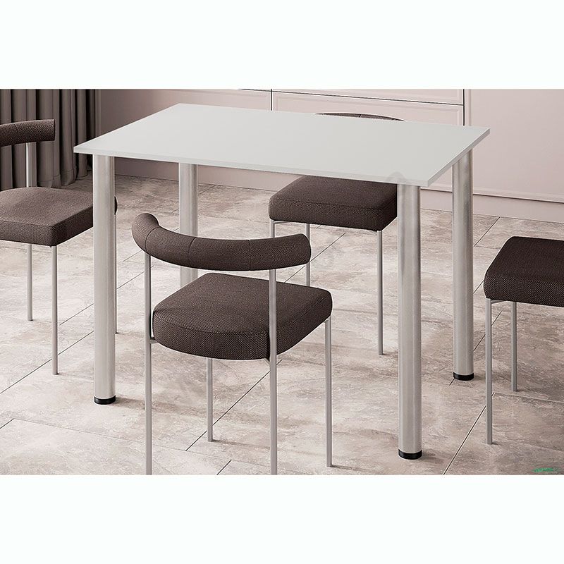 Нерозкладний прямокутний стіл на металевих ніжках.