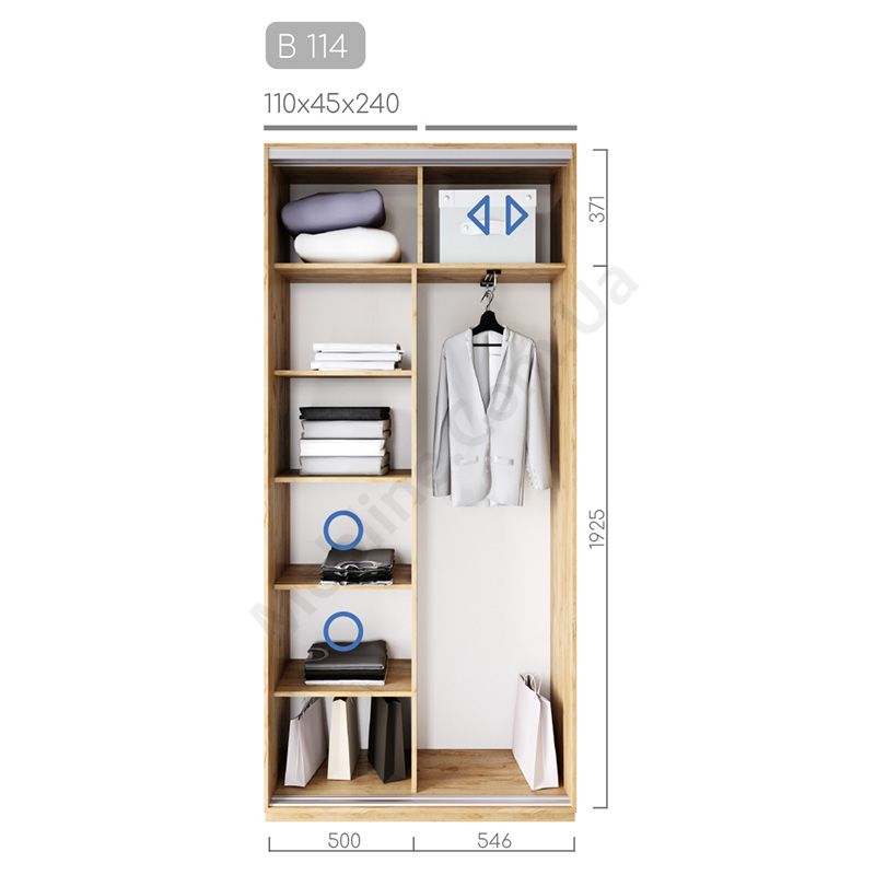 Дводверна шафа-купе шириною 110 см, глибиною 45 см, висотою 220 чи 240 см