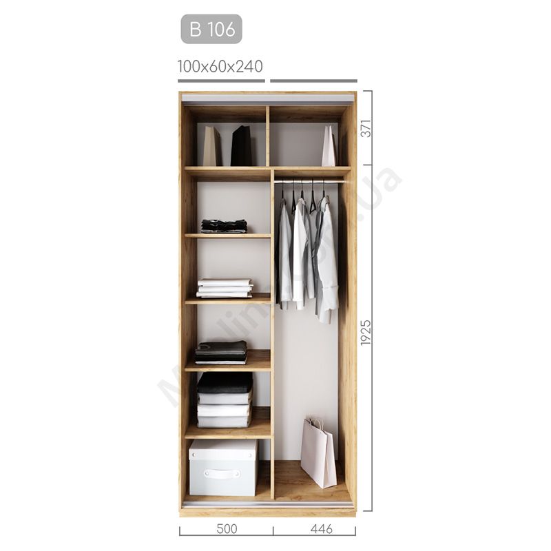 Дводверна шафа-купе шириною 100 см, глибиною 60 см, висотою 220 чи 240 см