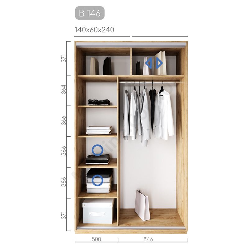 Дводверна шафа-купе шириною 140 см, глибиною 60 см, висотою 220 чи 240 см