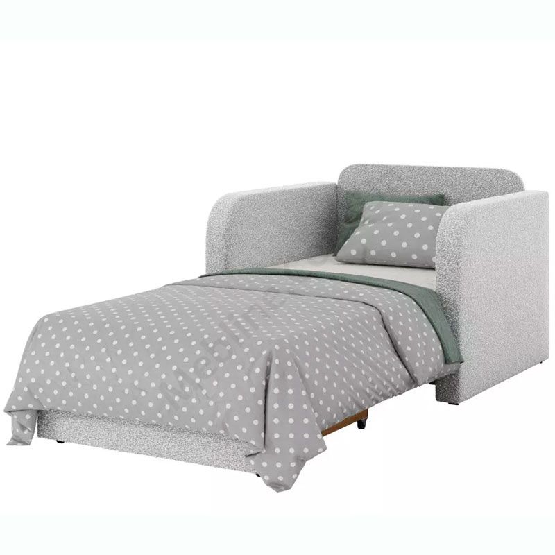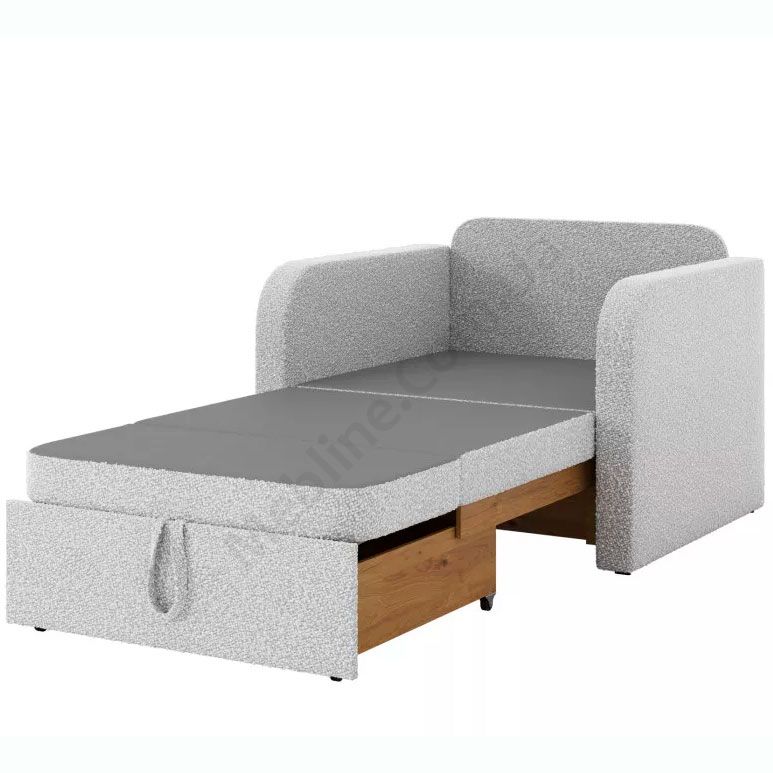 Невеликий розкладний диван з м’якими підлокітниками та коробом.