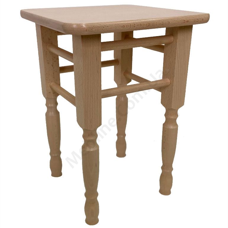 Квадратний табурет з натурального дерева на точених фігурних ніжках.