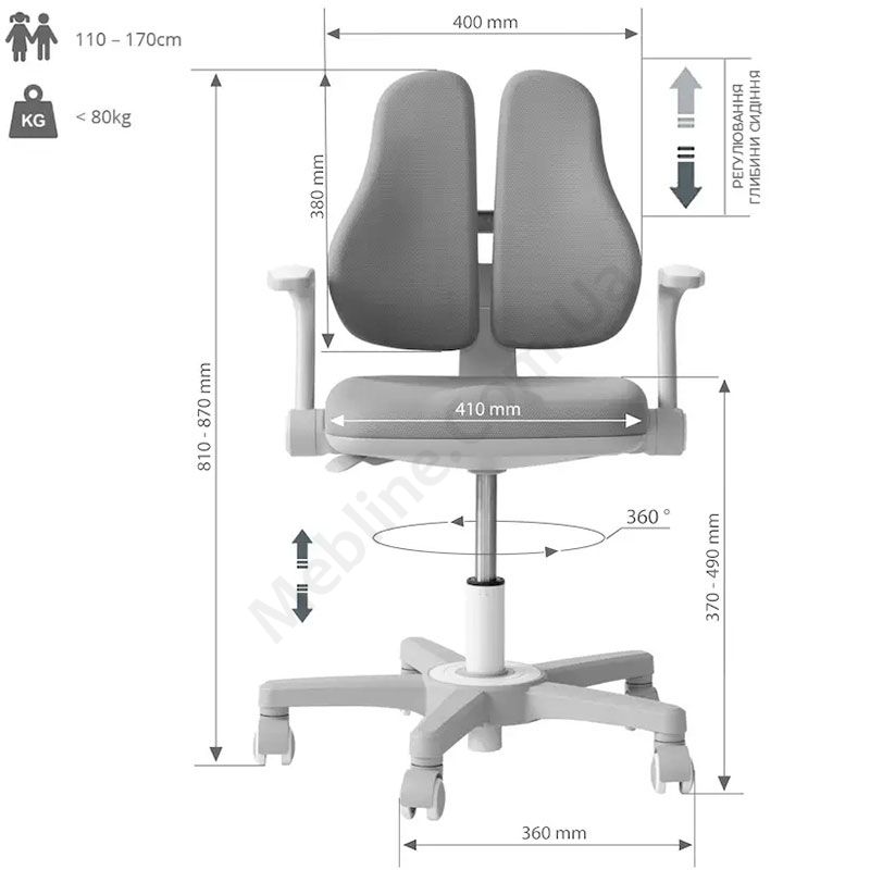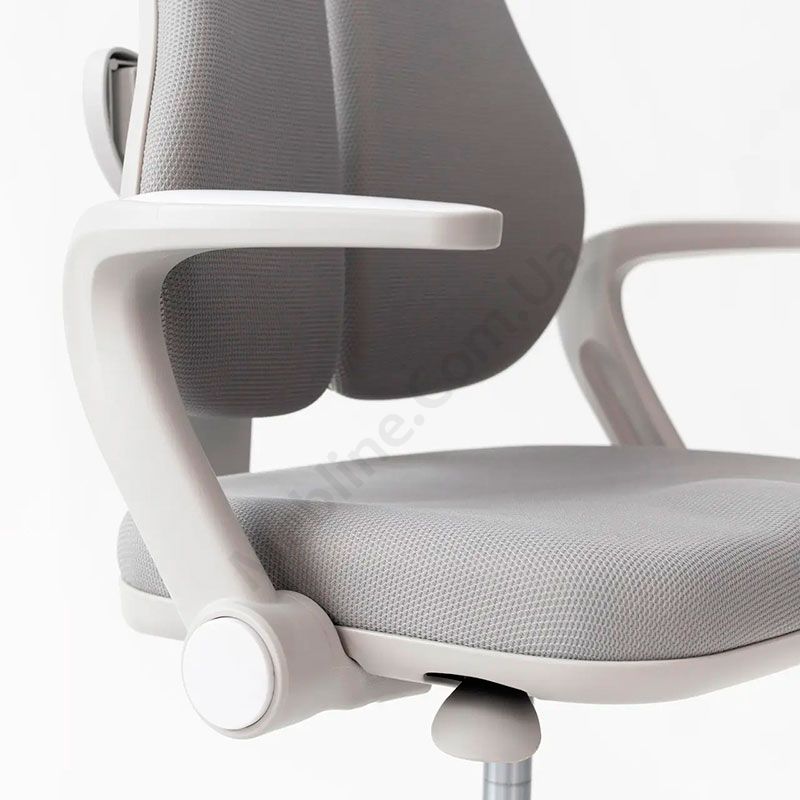Обертове ергономічне крісло для школяра з подвійною спинкою та підлокітниками.