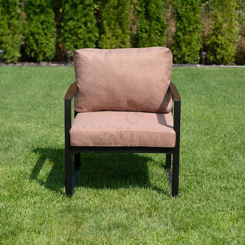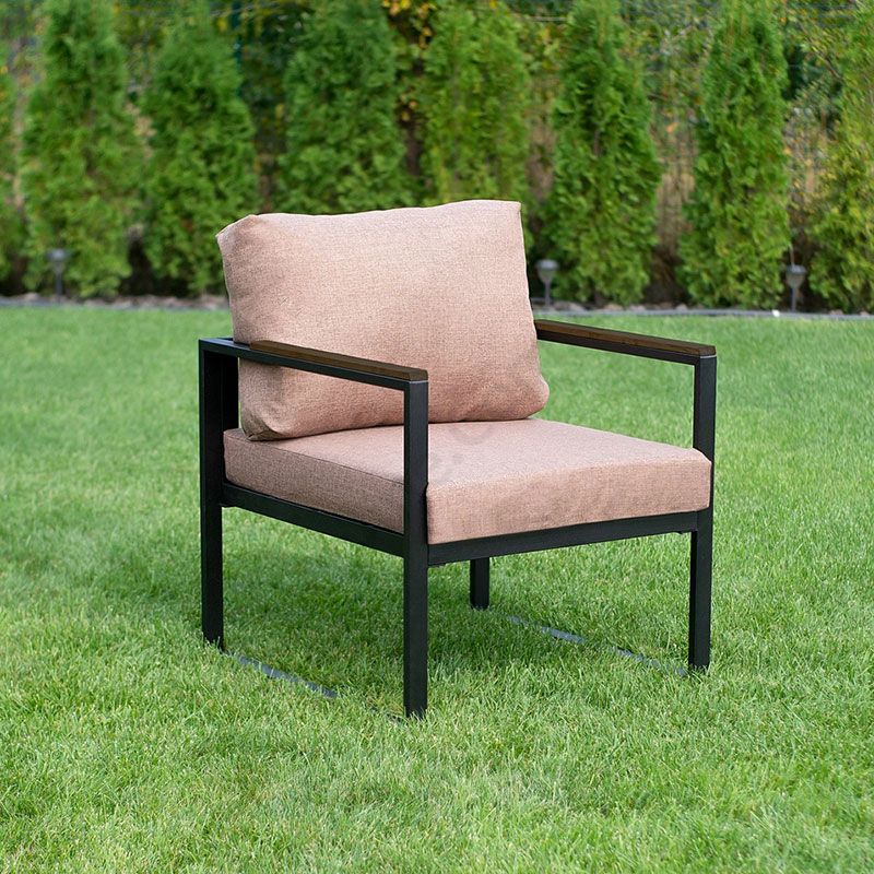 Cадове м’яке крісло на металевому каркасі.