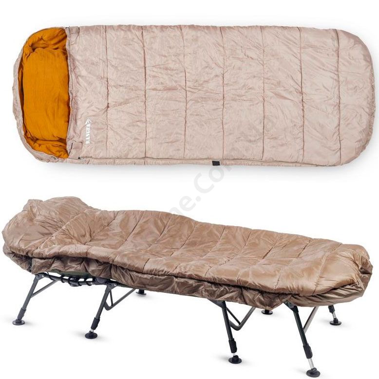 Розкладачка для природи зі спальним мішком та великим спальним місцем.