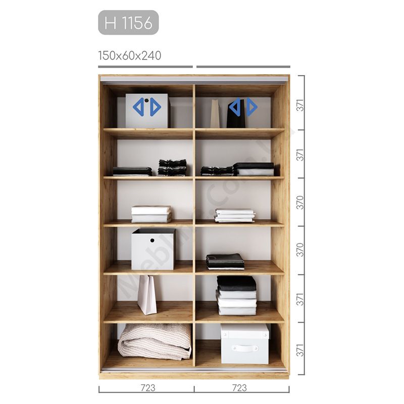 Дводверна шафа-купе шириною 150 см, глибиною 60 см, висотою 220-270 см
