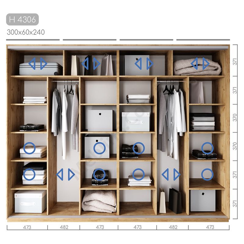 Чотиридверна шафа-купе шириною 300 см, глибиною 60 см, висотою 220-270 см