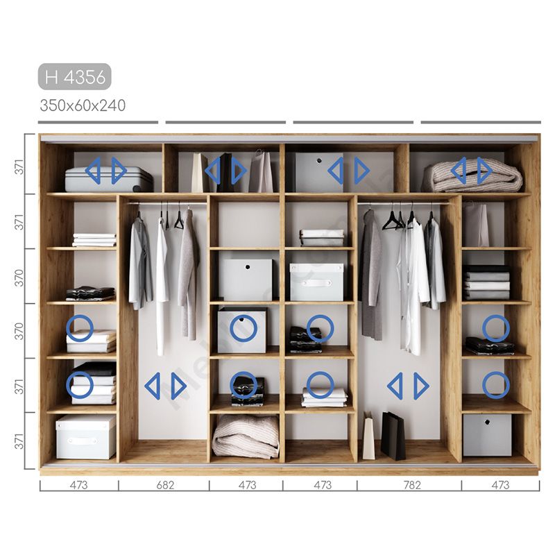 Чотиридверна шафа-купе шириною 350 см, глибиною 60 см, висотою 220-270 см
